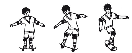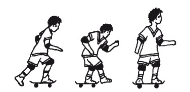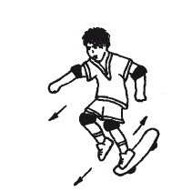 Спрыгивают с доски во время движения, только вперед (рис. 51). При этом сама доска откатывается немного назад. В экстренном случае можно затормозить задним концом доски (рис. 52) или поворотом на 180 градусов (рис. 53).