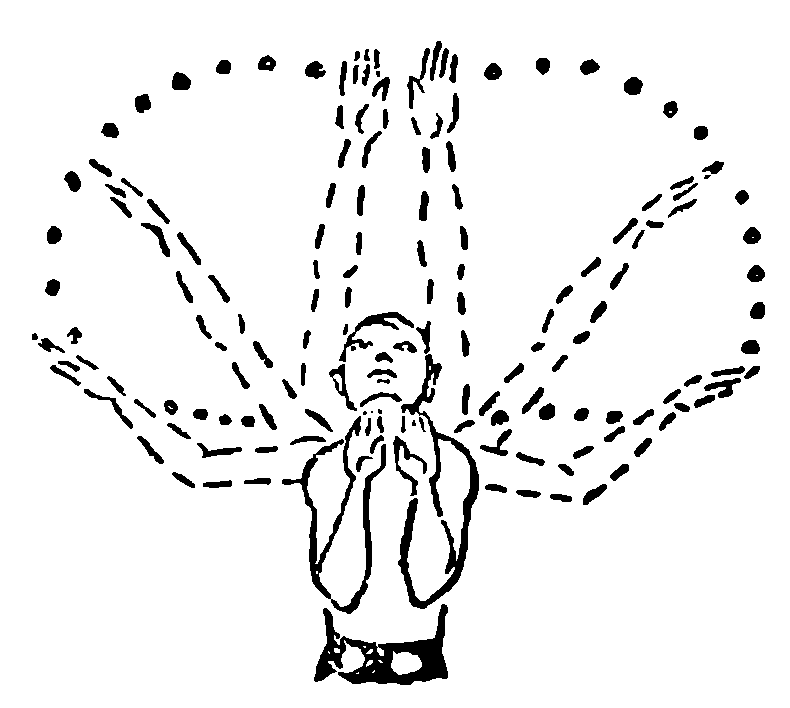 Рисунок гребкового движения руками имеет много разновидностей: то он более короткий, то более широкий, то глубокий, то поверхностный. Однако если посмотреть на движение кистей рук снизу, то вы увидите, что они «рисуют» в воде очертания сердца (рис. 26). Движения руками брассом вначале следует изучить на берегу сидя на скамейке или стоя наклонившись вперед, повторяя их по 15–20 раз. Только после этого приступайте к освоению этих движений в воде (упражнения 8, 10, 11).