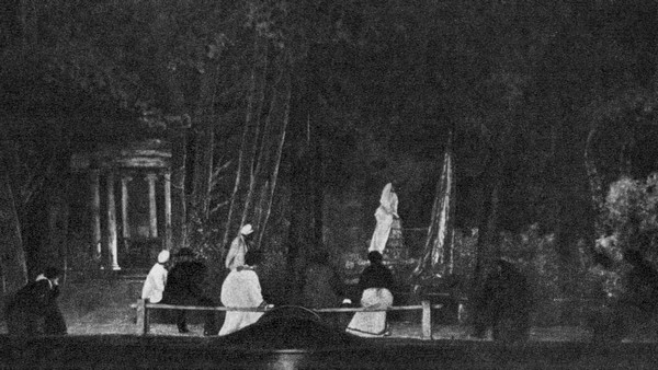 «Драма жизни» Гамсуна — «пьеса для исканий», постановка которой в 1907 году была так важна для Станиславского. Художник В. Российский зарисовал сцену первого акта. Ивар Карено — К. С. Станиславский, Терезита — О. Л. Книппер-Чехова, нищий Тю — Н. А. Подгорный