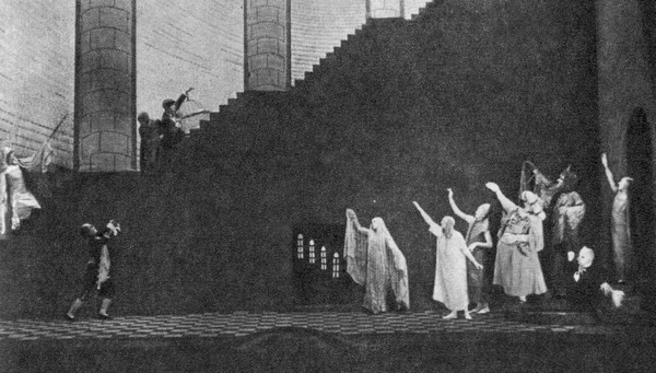 Гамлет — В. И. Качалов, Лаэрт — Р. В. Болеславский в сцене поединка из спектакля «Гамлет» (1911). Спектакль — поединок двух режиссеров, Станиславского и Гордона Крэга