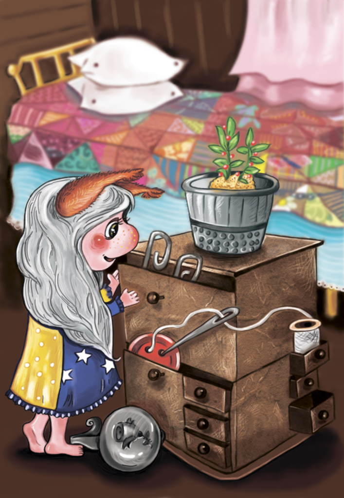 Кое-что из этого бабушка Люмия «одолжила» у одной улыбчивой старушки, которая любила мастерить для своих подружек-игл симпатичные подушечки. Она садилась у открытого окна за старый швейный стол возле горшков с пунцовыми фиалками. Потом раскладывала перед собой шёлковые нитки мулине, ножницы и принималась за работу. Когда старушка ненадолго отлучалась, чтобы попить на кухне чай с ирисками и покормить своего тучного кота, Люмия незаметно спускалась с ветки акации на подоконник. Люмкина бабушка выбирала, на первый взгляд, непригодные для работы обрывки ленточек, нитей, пару маленьких иголок и оставляла взамен того, что брала, самые красивые стёклышки из тех, которые у нее были.