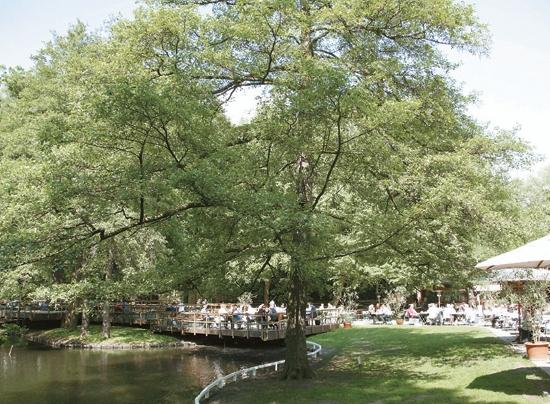 Прекрасное тихое место – близлежащий сад со скульптурами (Skulpturengarten), среди которых работы Родена. Хайлигера и Маркса. На террасе стоит «Стрелок из лука» Генри Мура.
