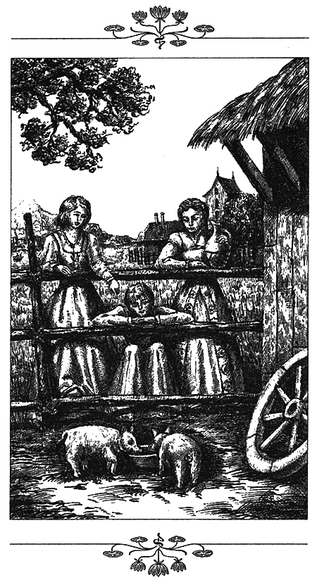 Втроем мы отправились к домику графского свинопаса. В небольшом загоне удобно устроилась огромная свинья с поросятами. Я отыскала лохань для воды и налила в нее немного эля. Элли проворно перескочила через ворота загона и поставила ее на землю.