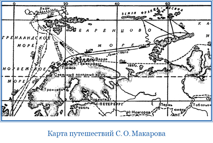 К вечеру мы в море присоединились к остальным судам, и я пересел на пароход «Иоанн Кронштадтский», а г. Попхам – на яхту «Blancatra». Весь наш флот состоял из следующих судов, часть которых ушла в Югорский Шар за несколько дней перед тем.