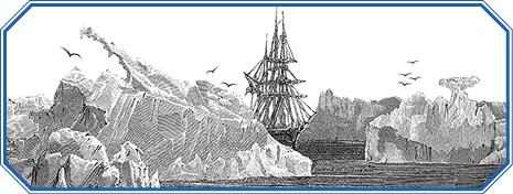 В полночь 9 июля осмотрели айсберг. Издали, с корабля, он имел вид черной пирамиды, возвышавшейся на торосе. Но при ближайшем рассматривании оказалось, что он имеет форму полуразвалившегося цирка, стены которого поднимаются треугольниками. Внутри цирка на арене находится озере пресной воды, имеющее диаметр около 10 м. Высота треугольного зубца черной стены от воды до вершины 4 1/2 м, ширина же в этой части только 1/2 м. Эта часть айсберга имела черный цвет потому, что была покрыта глиной.