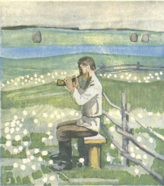 Свежие сумерки выстудили небо, и в нем — чистом, бледном, пустынном — уже теплилась, мерцая, крупная синяя звезда, первая предвестница ночи. В той стороне, где по отдаленному лаю собак угадывалась деревня, заиграл пастуший рожок. Тоскливая, протяжная песня без слов, полная скорби о чем-то несбывшемся или навсегда потерянном, становилась все слышнее и явственней по мере нашего приближения. Это был напев знакомой русской песни о человеке, не нашедшем своей доли.