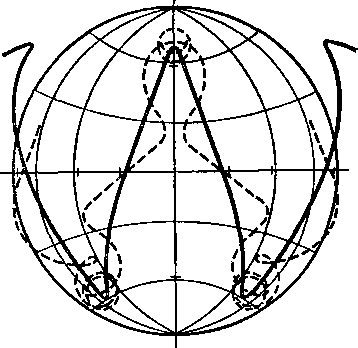 Рис. 16. Движение заряженной частицы в магнитном поле Земли (в меридиональной плоскости)