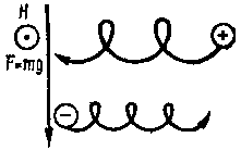 Рис. 19. Дрейф частиц в поле тяжести, перпендикулярном к магнитному полю Н