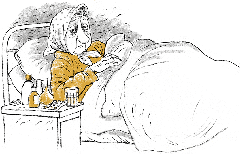 Тут бабушка Женя заметила у кровати тумбочку, битком набитую лекарствами.