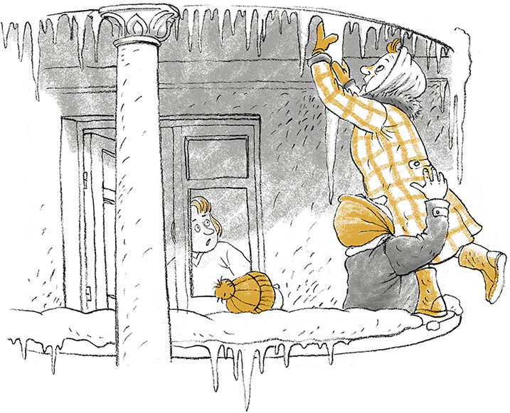 – Не волнуйтесь, не волнуйтесь, – успокоила их бабушка Женя, – всё в порядке! С нами всё хорошо! А чтобы вам не попало, надо просто выкинуть эти мелкие сосульки, и директор не догадается.
