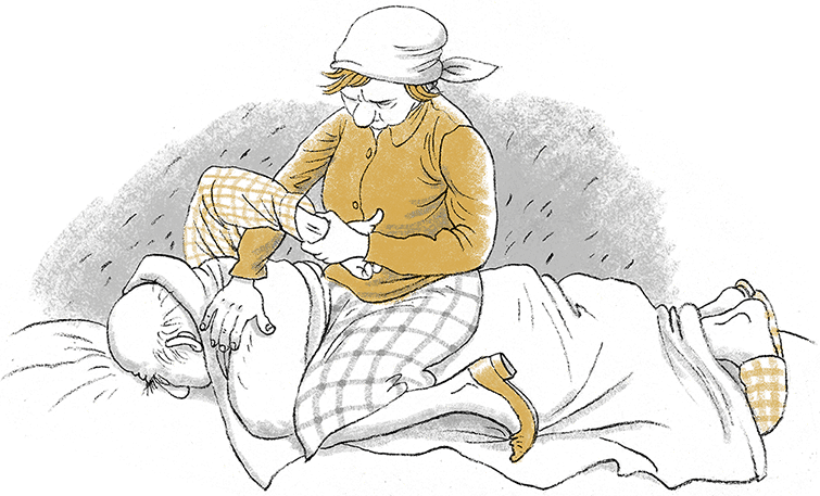 – Пусти! Пусти меня! – пыхтел Валерьич, пытаясь выбраться, но он умудрился так разозлить бабушку Женю, что она села в специальную борцовскую позу, которая называется «нижний захват», и ловко, но крепко сдерживала Валерьича, позабыв о боли в ноге.