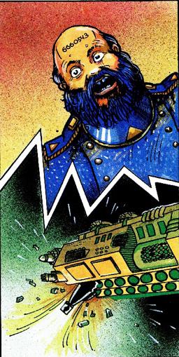 – Эй, на Суперботе! – по кабине разнесся резкий грубый голос. Один из экранов справа ярко осветился, и на нем возникло изображение мужчины с густой синей бородой и бакенбардами. Одет он был в темно-фиолетовый мундир с серебристыми блестками. На лбу же его (вот поразительно!) был отпечатан крупным шрифтом семизначный номер.
