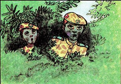Еще чуток посовещавшись, неизвестные вышли из укрытия. Это были мальчики, одному из которых было лет этак тринадцать, а другому не больше шести-семи. Оба были одеты в совершенно одинаковую, хорошо подогнанную армейскую защитного цвета униформу: кепки, гимнастерки, мешковатые штаны, ботинки на толстой подошве с высокой шнуровкой и все со множеством пряжек и молний и покрыто самыми натуральными маскировочными разводьями, словом, за такую одежду любой мальчишка на грисовой родине без колебания позакладывал бы собственную бессмертную душу, если б, разумеется, подозревал о ее наличии и о возможности совершения столь блистательного обмена.