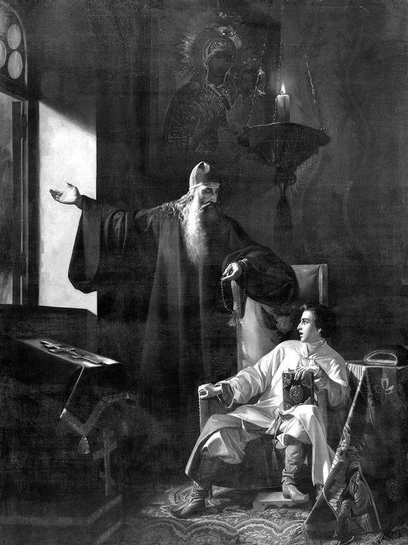 Царь Иоанн Грозный и иерей Сильвестр во время большого московского пожара 24 июня 1547 г. Художник Павел Плешанов