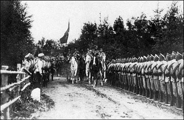 Первая мировая война. Царь объезжает строй солдат-фронтовиков.