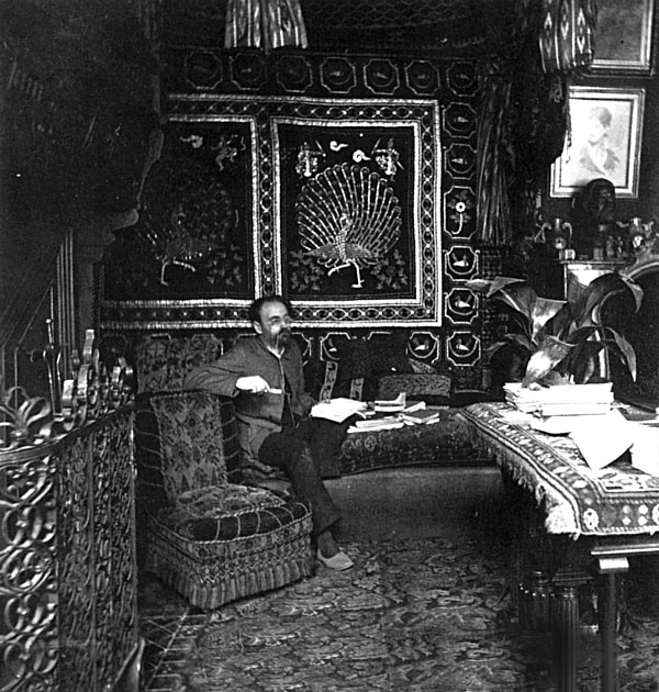В 1878 году Золя гордится тем, что купил «кроличий домик» в департаменте Сены-и-Уазы. Поселившись там, он тотчас принимается увеличивать и отделывать дом, где собрал столько разнородных предметов, что его жилище, по словам одного русского журналиста, стало напоминать «лавку старьевщика».