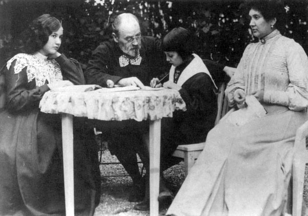 Слева направо мы видим Золя, Александрину, Шарпантье, его жену и гравера Демулена.