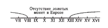 Рис. 2.12. Загадочное отсутствие средневековых золотых монет в Европе в эпоху VIII–XII веков н. э