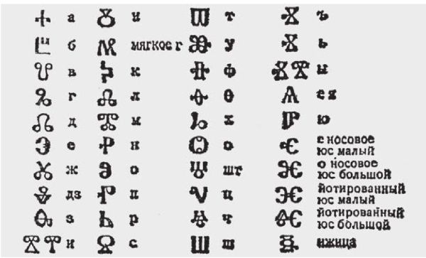 Рис. 3.16. Старая русская глаголическая азбука. Взято из [797], с. 310