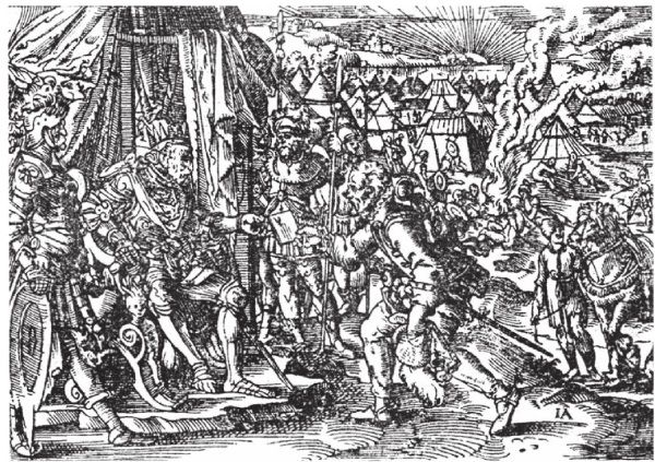 Рис. 3.36. Встреча посла русским государем. Русский царь и его приближенные закованы в тяжелые железные латы. Гравюра из книги Sigmund Freiherr zu Herberstein. «Die Moscovitische Chronika…» – Francfurt am Mayn: Zigmund Feyerabend, 1576. Взято из [161]