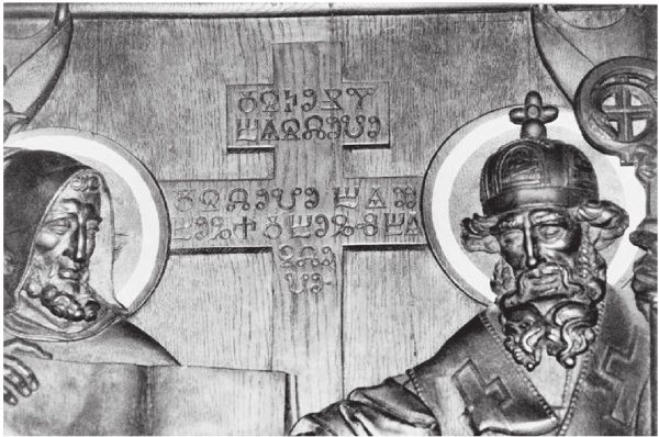 Рис. 3.15. Православный крест с глаголической церковно-славянской надписью в католическом соборе Святого Витта в Праге. Фотография сделана Г.А. Хрусталевым в 1999 году