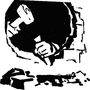 Бросалось в глаза, что «работал» он с нарочитым, как бы подчеркнутым единообразием. Туннели, сделанные им в стенах, отличались идеальной прямизной и точностью, а следы своего присутствия он не только не старался замести, а, наоборот, на месте преступления обязательно оставлял свою «спецодежду» и инструменты — всегда одни и те же — шлямбур и молоток-кувалду. Рядом непременно валялись пустые консервные банки и бутылки из-под цинандали.