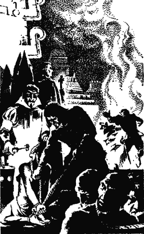 При ярком свете костра фигуры монахов, главных устроителей этого обычного для тех времен зрелища, стали мрачнее: на лицах и одежде плясали багровые, желто-красно-черные пятна.
