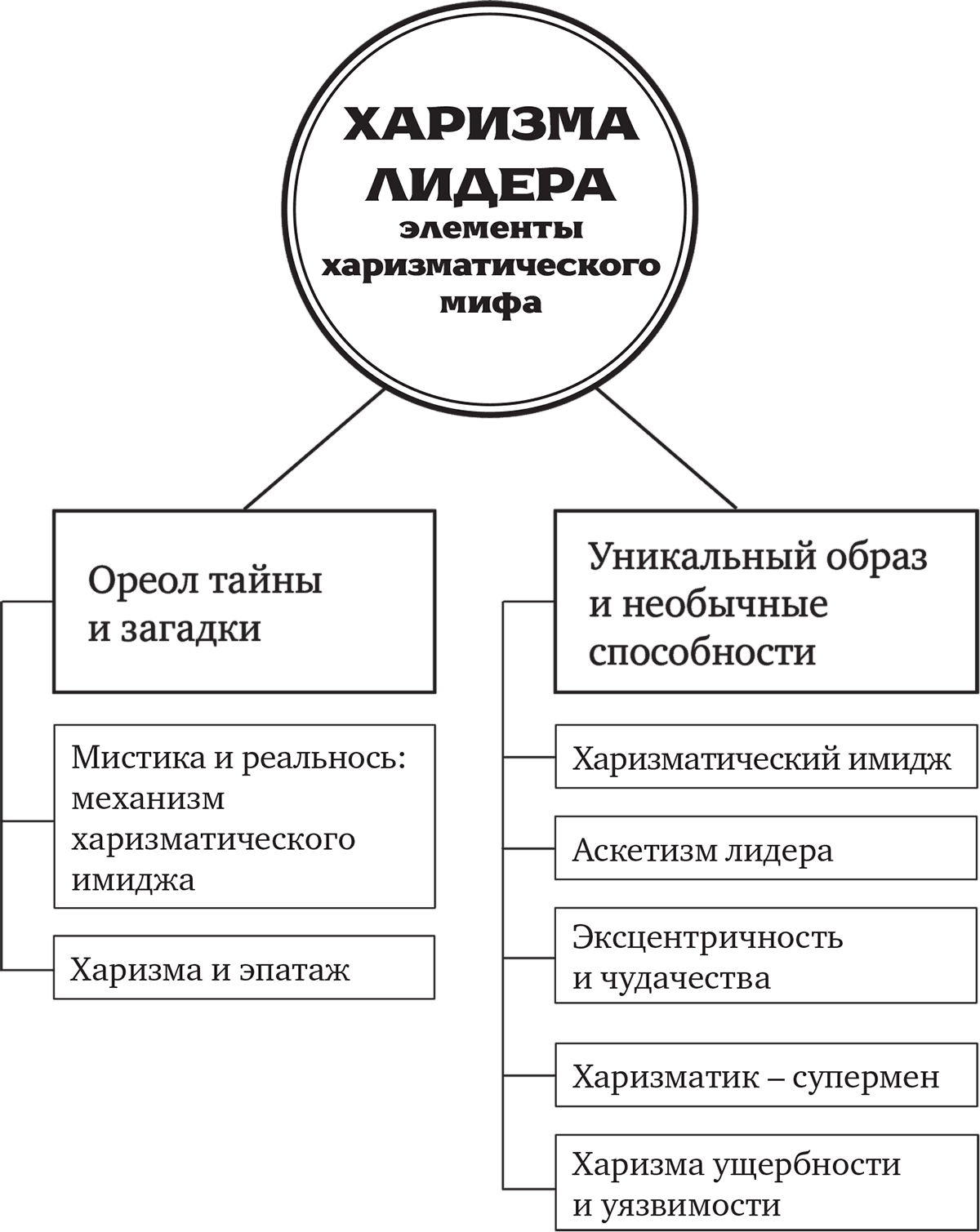 Внешние черты лидера, его «стигматы», внешняя привлекательность или ущербность – лишь стартовая точка для формирования его имиджа. Образ харизматика – это то, каким он себя предъявляет публике. Этот образ складывается еще и благодаря его поведению и методам коммуникации. Имидж, бренд лидера возникает, когда все эти элементы складываются вместе. Тогда в сознании публики – поклонников, последователей, электората – появляется цельная картинка лидера.