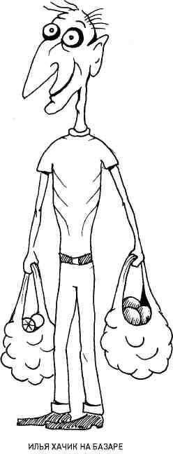Илья Хачик, о котором я уже писал, считался у нас эталоном худобы. Нормальный человек состоит из костей, мышц и жира – Илья состоял только из рёбер, которые выпирали на спине, на груди, и даже на животе Он мог бы работать скелетом в мединституте, но его не брали, потому что рядом с ним остальные скелеты казались бы раскормленными боровами. В нём бурлила вулканическая энергия и буйствовал безразмерный аппетит: он мог поглощать пищу по двенадцать раз в день, в любом месте, в любом количестве, не поправляясь ни на грамм, в нём всё сгорало – аппетит подкармливал энергию, энергия подстёгивала аппетит. Грек по национальности, незаменимый в компании, щедрый, гостеприимный, он участвовал в любых авантюрах и розыгрышах. Обожал ходить на базар и торговаться, особенно, с «лицами кавказской национальности»: сразу же сбивал цену наполовину, добавлял по десять копеек, по рублю, соглашался, но тут же передумывал, уходил, возвращался, бил по рукам, снова уходил и, наконец, когда измученный продавец уже готов был доплатить ему, только чтобы избавиться от такого покупателя, Илья жал ему руку, обнимал, клялся в вечной дружбе и, даже, оставлял «чаевые». Он был хорошим другом, всегда откликался на призывы о помощи. Однажды, лет через пять после окончания института, я пожаловался, что у меня в квартире холодно. Илья, который тогда руководил строительным участком, через день прислал мне несколько «списанных» секций батареи парового отопления. На очередном вечере встречи наших выпускников (которые всегда организовывал Илья) я написал об этой «гуманитарной» помощи: