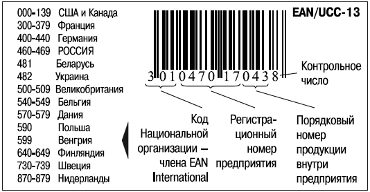 Штриховой код представляет собой графическое изображение уникального международного номера товара. Номер товара уникален в международном масштабе, и по нему можно определить производителя (с 1999 г. это стало возможно сделать через Интернет www.ean.ton.ru/gepir, www.gepir.org). В 98 странах мира товарам присваивается код EAN/UCC-13.