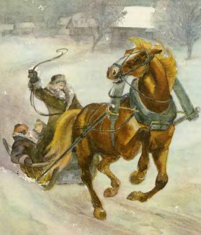 Назавтра с помощью директора цирка Николая Александровича Слаутина удалось взять на прокат в заготконторе большие сани-розвальни, дугу с колокольчиками, хомут и прочую упряжь. Днём после репетиции я с конюхом запряг Ваську в сани. Конь дал это сделать без большой охоты. Он уже отвык от прежней службы. И потом, кому же хочется хомут на шею надевать, снова становиться тягловой скотиной после вольной, красивой артистической жизни?