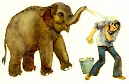 После завтрака – умывание. Умываться Рада очень любит. Иногда она не прочь и пошалить: наберёт в хобот воду и окатит служителя, как из душа.