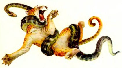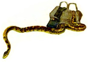 Но есть и другие змеи – например, удавы. Они не ядовиты и для человека не опасны. Правда, удав удаву рознь. В жарких странах Южной Азии живут огромные удавы до десяти метров длины. Их блестящая кожа разрисована чёрно-белой сеткой. Называются эти змеи сетчатыми питонами. Иногда они нападают даже на таких хищников, как шакалы и леопарды, душат их и заглатывают целиком.