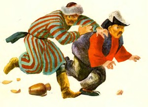 Испугавшаяся Дымка помчалась на четырёх лапах вдоль рынка, опрокидывая глиняные горшки, лотки с фруктами и всякой всячиной. Торговцы подняли крик. Началась паника.