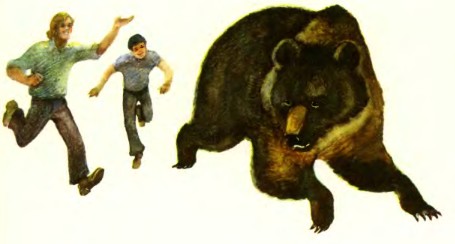 Начали повторную съёмку. Макс без большой охоты поднял лапу на браконьеров. Потом сел на мотоцикл и поехал, как было предусмотрено сценарием фильма. Но поехал быстрее, чем надо, и совсем в другую сторону. Я со своими помощниками бросился вдогонку. Сначала Макс прибавил газ, а потом на ходу спрыгнул с мотоцикла и побежал по тропинке, ведущей к озеру. Мы – за ним, а за нами – все участники киносъёмки. Медведи бегают очень быстро. Поэтому Макс без труда возглавлял бег. Мы еле поспевали за ним. Добежав до берега, Макс без промедления прыгнул в воду!