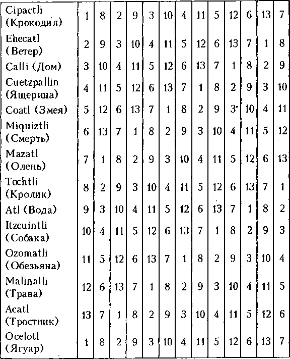 ТАБЛИЦА ИСЧИСЛЕНИЯ ДНЕЙ (TONALPOHUALLI)