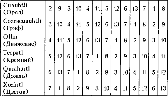 Поименованные таким образом годы следовали один за другим в одном и том же порядке, и должно было пройти пятьдесят два года, прежде чем появится год с тем же именем и с той же цифрой. Период из пятидесяти двух лет был как бы эквивалентом нашему веку.