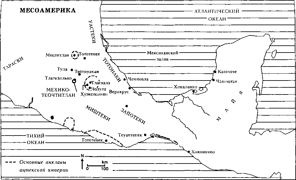 В начале ацтекской мифологии существует не один бог, а два, образующие единую пару. Когда эта пара представляется в виде неразрывной сущности, то используется общее наименование Ометеотль (Двойное божество), в других случаях применяются раздельные имена: Ометекутли и Омечихуатль (Владыка бог, Владычица богиня). Все в Ме- соамерике дуалисгичио, все представляется в терминах равновесия, противоположности и добавочпости. Ометеотль — это одновременно мужское и женское начало, содержащее в себе все противоположности добавочпости мира: в мужском они ассоциируются с небом, светом, солнцем, жизнью, воином, племенем, активностью; в женском — с земной жизнью, тьмой, лунным блеском, смертью, неподвижностью, пассивностью.