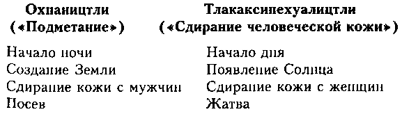 отовсюду мусор, все начищалось — определялась важная точка отсчета. Это касается не в меньшей мере и праздника «Связывания годов», которым отмечалось гоже начало, но уже века. Во время церемоний тушили все огни и все находились в полной тишине, как если бы Земля умерла. Затем нужно было зажечь огни торжественно, с мыслью о рождении Венеры-огня в начале эры. Самый яркий праздник, с совершенно удивительными обрядами — праздник возрождения земли, залог наступления сезона дождей и появления растений...