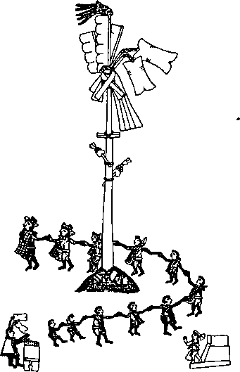 Хоровод вокруг столба, установленного в честь праздника «Падающего плода». Codex Borbonicus по Селеру, 1902-1923.