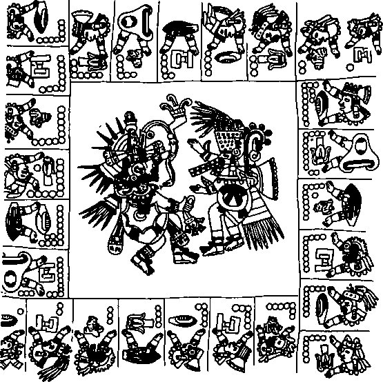 Кецалькоатль и Тецкатлипока. Codex Borbonicus, по Sejourne, 1981