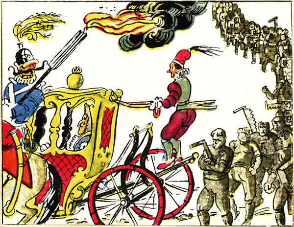 — Плахи! — кричал гвардеец, оборачиваясь и скаля зубы под усами, похожими на сапоги. — Плахи всем мятежникам! Всем отрубят головы! Всем, кто осмелится восстать против власти Трех Толстяков!