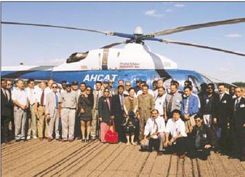 Новая и очень перспективная разработка завода – легкий многоцелевой «Ансат» представляет особый интерес для эксплуатантов винтокрылой техники. Естественно, что «Ансат» в небе приковал всеобщее внимание. Как сообщил ведущий летчик- испытатель В. Русецкий, вертолет на момент показа уже совершил более 150 полетов и держится в воздухе очень уверенно.