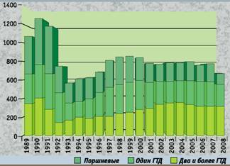 Общее число машин, которые будут выпущены на коммерческий вертолетный рынок в период 1999–2008 гг., определяется прогнозом примерно в 7800 вертолетов общей стоимостью приблизительно 199,9 млрд. долл. Годовой выпуск увеличился в 1999 г., будет сравнительно стабильным в 2000 и затем начнет несколько снижаться в 2001 г. Среднегодовое производство будет оставаться относительно стабильным на протяжении всего периода с небольшими колебаниями. Прогноз в отношении стоимостного выражения продукции показывает различные тенденции. Годовая стоимость проданной техники возрастет к 2006 г. Это произойдет как из-за появления на рынке вертолетов различной стоимости, так и из-за увеличения на рынке доли вертолетов с несколькими газотурбинными двигателями.