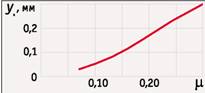Как известно, на больших скоростях полета возрастает переменная составляющая воздушной нагрузки, действующей на лопасть. На двухлопастном НВ вторая гармоника воздушной нагрузки имеет значительную величину, достигающую на максимальной скорости полета 20% от величины первой гармоники. Неуравновешенные вертикальные силы с обеих лопастей суммируются на втулке и вызывают вертикальные вибрации автожира с частотой 2n. Амплитудное значение виброперемещений быстро возрастает с увеличением скорости (рис. 4).