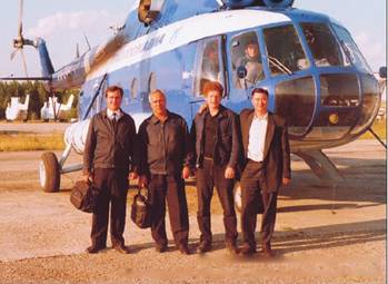 Экипаж Ми-8 после эвакуации в-ертолета Ми-2. Слева направо: М. Сметанин, В. Герман, В. Мартьянов, В. Изъюров