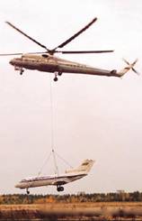 Конечно, наших соседей из «Комиавиатранса» подобным «мероприятием» не удивишь, у них масштабы другие. Например, 26 июля 2001 года летчики этой компании решили транспортировать вертолетом Ми-10 самолет Як-40! Сразу не получилось: «Як» упорно не хотел «взлетать» вертикально (бывает, что и крылья полету мешают!). Не мудрствуя лукаво, крылья самолету подрезали и в таком виде перевезли на новое место жительства – детскую площадку поселка Вой-Вож, а там уже вклепали крылья.