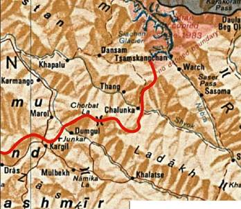 Кашмир, линия контроля – красного цвета