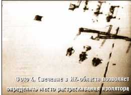 Не менее важной является проблема мониторинга ЛЭП и трансфоруаторных подстанций. Авария на линии электропередачи может привести к возникновению критических ситуаций. В связи с этим важно не только вовреуя ликвидировать последствия аварии, но, в первую очередь, предупредить ее. Наличие на снимке трассы ЛЭП, сделанном с воздуха, информации о локальном повышении температуры многожильного токопроводящего кабеля свидетельствует о том, что в этом месте произошло нарушение его целостности. Именно такие повреждения влекут за собой увеличение плотности электрического тока и, как следствие, повышение температуры носителя. В этой ситуации необходимо наложение на провод специальной шины, которая предотвращает дальнейшее разрушение кабеля, ликвидирует скачок уплотнения. Аналогичное изменение температуры происходит и в изоляторах трансформаторных высоковольтных подстанций. Это изменение можно увидеть, «поймать» с помощью тепловизора. Снимки дают яркое «свечение» в ИК-области (фото 4). Это значит, что произошло растрескивание изолятора, которое может привести к утечке электроэнергии, особенно в условиях повышенной влажности.