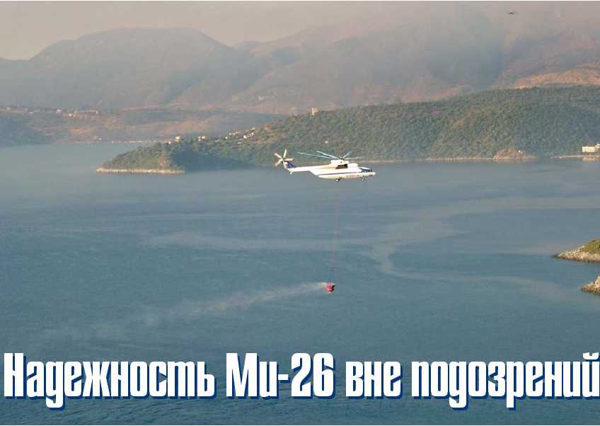 На следующий день после катастрофы глава МЧС России С.К. Шойгу распорядился временно запретить в стране полеты вертолетов Ми-26, оснащенных водосливными устройствами (ВСУ). Напомним, что вертолет нес ВСУ-15А на внешней подвеске, выполненной из синтетического высокомолекулярного материала (СВМ), с длиной центрального каната ленточной стропы (ЛС-15) 30 м. Такой грузовой строп, в отличие от металлических тросов, не раскручивается под действием растягивающих нагрузок, а специально спроектированная форма емкости не создает в полете вращающих моментов, передаваемых через подвеску на вертолет.